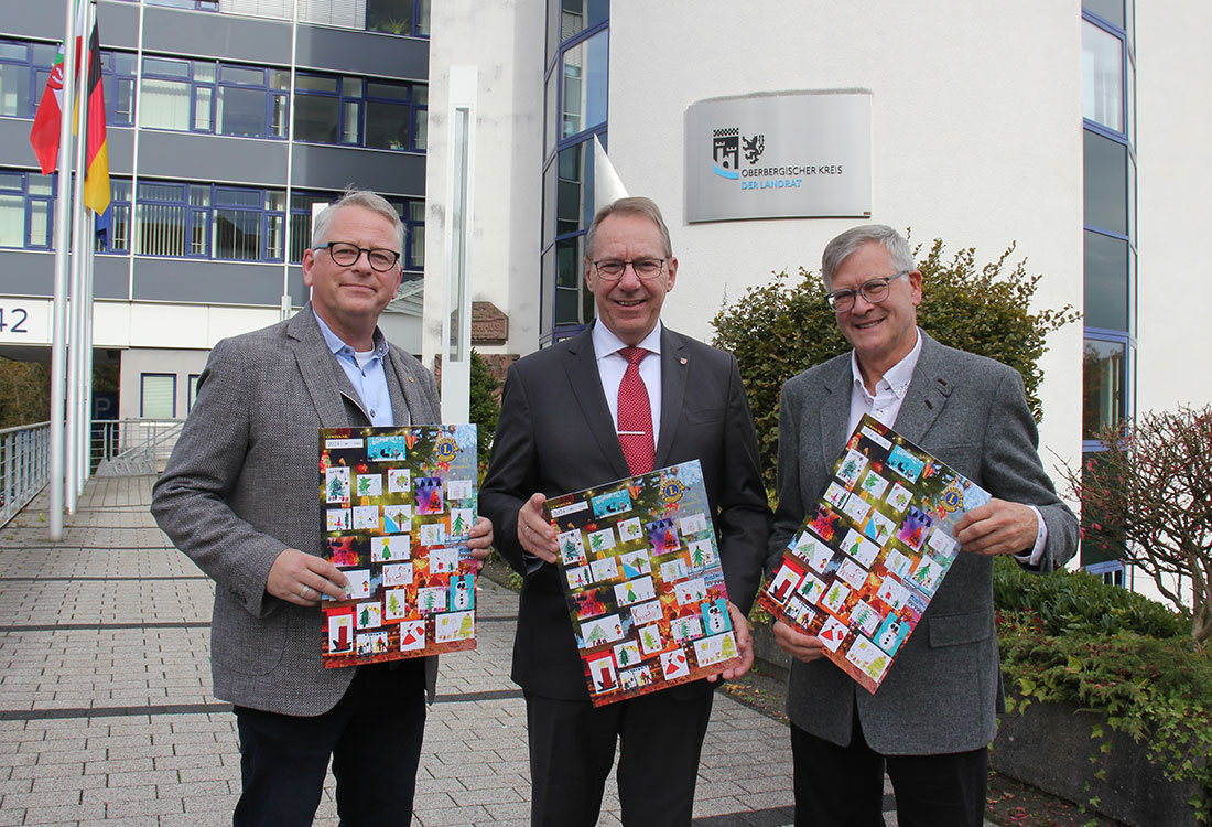 Was gehört alles für die Gummersbacher zur Vorweihnachtszeit dazu? Klar, da sind die Klassiker wie Lebkuchen, Spekulatius, Tannenbäume oder auch das (häufig vergebliche) Warten auf Schnee an Weihnachten. Bereits seit 20 Jahren freuen sich viele Oberberger aber auch auf den speziellen Adventskalender der oberbergischen Lions Clubs. Zum einen natürlich, weil es die Chance auf tolle Gewinne gibt. Zum anderen aber – und das ist noch wichtiger – weil man mit dem Kauf eines Kalenders die gute Sache und wichtige soziale Einrichtungen unterstützt. Gestern ist traditionell der erste Kalender an Landrat Jochen Hagt übergeben worden. Der Kalender ist ab sofort in Sparkassenfilialen, Geschäften und Einrichtungen der Umgebung zum Preis von 5 Euro erhältlich.