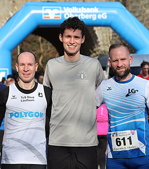 [Der Gewinner des Hauptlaufes Moritz Becker (Mitte), der Zweite Michel Krüger (re.) und der Drittplatzierte Christian Becker.]