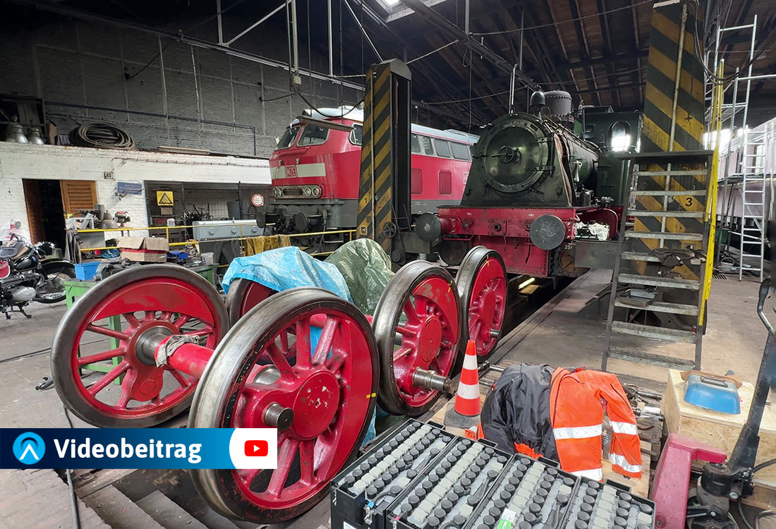 Video: Michael Kleinjung --- Zur Zeit wird die Dampflok "Waldbröl" im Lokschuppen des Dieringhauser Eisenbahnmuseums für den TÜV vorbereitet.