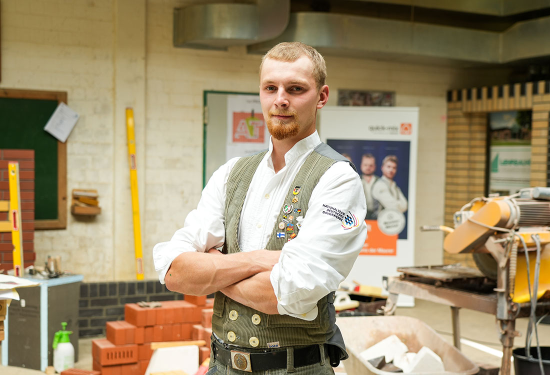 Bei Arns Bau Massivhaus in Wenden-Hünsborn beginnt er seine Ausbildung. „Hier wusste ich gleich: Das ist mein Beruf! Dass es danach so ausartet, hatte ich aber nicht erwartet“, sagt er mit einem Lachen. Tatsächlich zeigt sich schnell: Masuch hat nicht nur Spaß am Handwerk, sondern beherrscht es auch sehr gut. Seine Ausbildung schließt er mit der Gesellennote 1 bei der Handwerkskammer Südwestfalen ab. Als Kammersieger geht es zur Landesmeisterschaft, 2022 zur Deutschen Meisterschaft. Dort in der Jury sitzen auch die Trainer der Berufe-Nationalmannschaft. „Und ich habe nach meinen Leistungen eine Einladung bekommen“, erinnert sich Masuch.