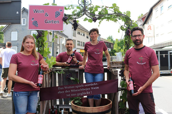 Mit ihrem aus Europaletten, Staudenkisten und einem ausrangierten Weinfass konstruierten Gefährt stellte sich das Team der Gärtnerei Koch erstmals der Geschwindigkeitskonkurrenz und machte nebenbei augenzwinkernde Werbung für „Mueschbejer Wein“. Das Quintett „Kreissparkasse“ hatte mit Bierkästen, Bollerwagen und Holz ein Gefährt konstruiert, in dessen Cockpit Pilot Cazo selbstbewusst auf die Muskelkraft seiner Kollegen Laura ,Özlem, Simone und Christopher vertraute.