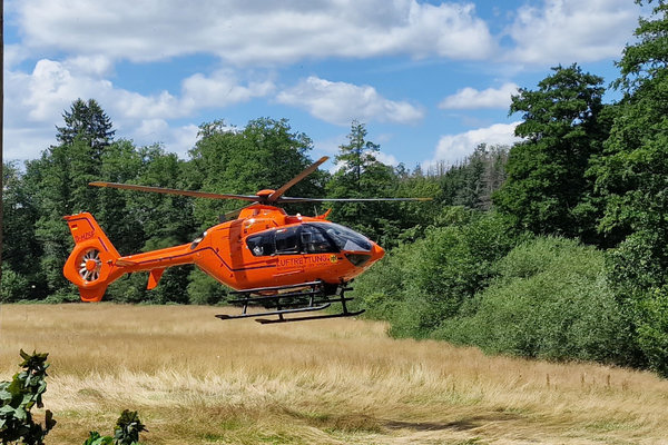 [Der Verletzte wurde mit einem Rettungshubschrauber nach Merheim gebracht.]
