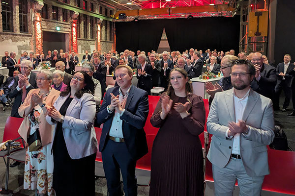 Lagemann richtete ihr Wort auch an Grebes Familie um Ehefrau Sylvia in der ersten Reihe. „Ihr könnt stolz sein auf ihn.“ Seiner gesamten Familie dankte natürlich auch Grebe. Sylvia sei „alleinerziehend mit Mann“ gewesen, scherzte er. Er dankte aber auch seinen Weggefährten, vielen Machern aus der Wirtschaft, seinen Vorgängern als Sparkassenchefs, besonders auch seinen Mitarbeitern. „Ihr seid das Herzstück!“