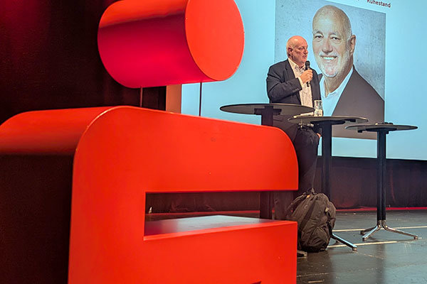 Kurz zuvor hatte er seinem Nachfolger und langjährigen Vorstandskollegen Dirk Steinbach symbolisch den riesigen Schlüssel des Sparkassen-Vorstandsvorsitzenden überreicht. Die beiden kennen sich inzwischen 26 Jahre, längst verbindet sie nicht nur die Sparkasse, sondern eine Freundschaft, wie auch schon zu Beginn der Veranstaltung vor mehr als 200 Gästen im lockeren Gespräch mit Moderator Christian Schmidt und in Steinbachs Rede deutlich geworden war.