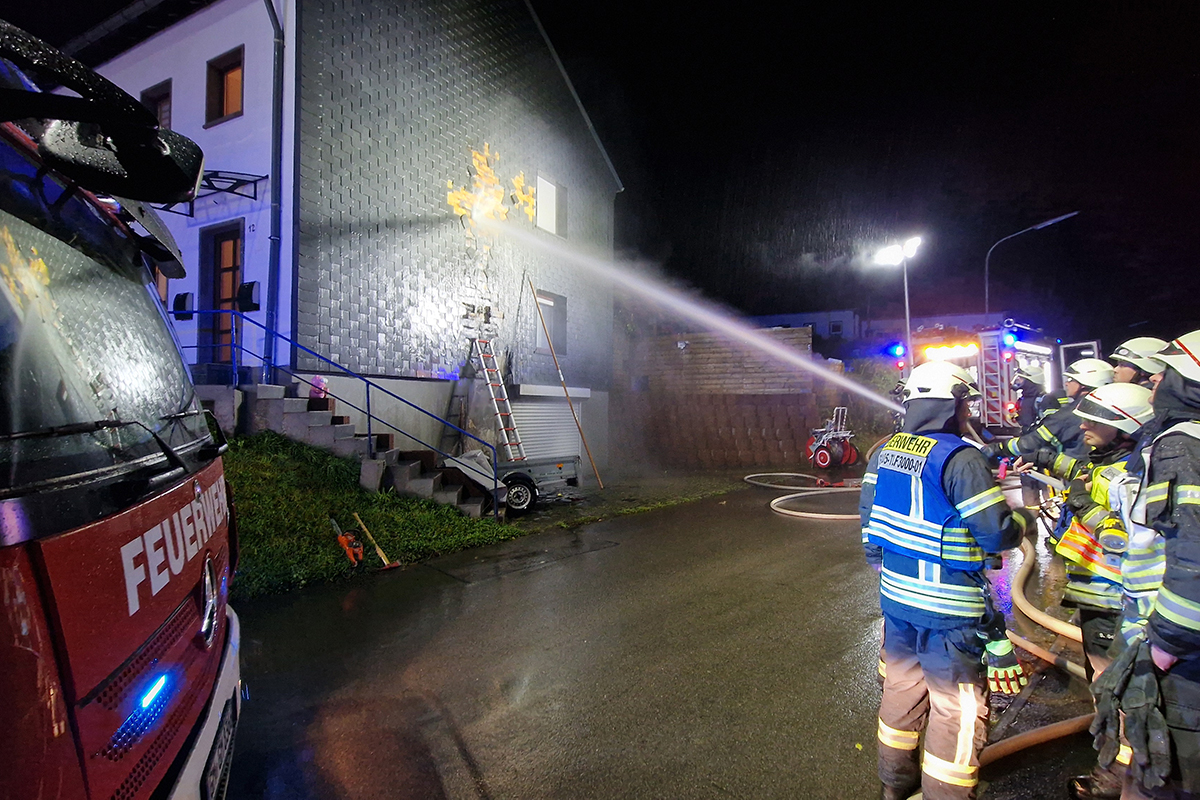 Nächtlicher Einsatz: Feuer griff von Anhänger auf Hausfassade über