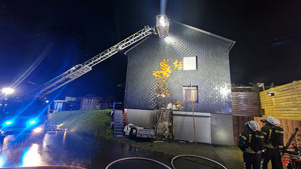 Gummersbach – Einen Fassadenbrand in Berghausen hat die Feuerwehr schnell unter Kontrolle – Nachlöscharbeiten gestalten sich trotzdem aufwendig.