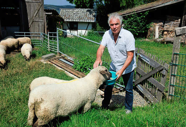 [Baumschulmeister Stefan Lüdenbach und seine natürlichen Unkrautvernichter.]
