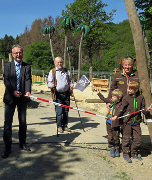 Reichshof – Nach sieben Wochen ohne zahlende Kundschaft hat der Tierpark in Eckenhagen wieder geöffnet – Bürgermeister Gennies weiht Piratenspielplatz ein.