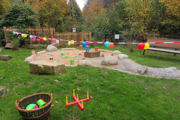 [Der neue Sandkasten samt Wasserlauf.]