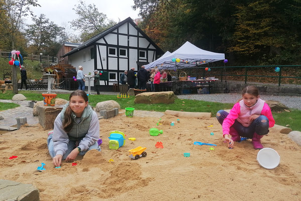 Eigentlich war angedacht, die Spielfläche zusammen mit der Sanierung der Mühle zu realisieren. „Der Spielplatz war von Beginn an in den Planungen mit drin“, erzählte Uwe Jacobs, der Vorsitzende des Vereins. „Aber wir haben das zurückgestellt“. Grund dafür war – wie bei so vielen Vorhaben – die Preissteigerungen in den vergangenen Jahren. 2021 war NRW-Heimatministerin Ina Scharrenbach zur Dümmlinghauser Mühle gekommen, um dem Verein Landesfördermittel in Höhe von 430.000 Euro zuzusagen. Wichtig sei den Verantwortlichen gewesen, sich erstmal auf das alte Gebäude zu konzentrieren. Vergangenes Jahr wurde im August der Abschluss des Umbaus gefeiert – und nun wurde auch die Spielfläche eingeweiht.