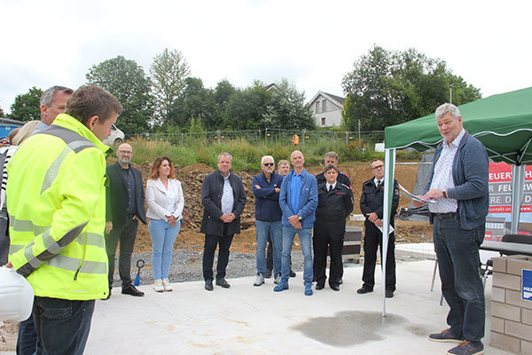 In Winterborn erfreuen sich die Nümbrechter Feuerwehrkameradinnen und – kameraden bereits an einer modernen Feuerwache – nun ist die Feuerwehr im Hauptort an der Reihe. Im April gingen die Arbeiten für das moderne Gebäude direkt an der Gouvieuxstraße los, am heutigen Mittwoch ist die Grundsteinlegung gefeiert worden. Gemeinde und Feuerwehr freuen sich schon jetzt auf das neue „Herzstück“ der ehrenamtlichen Brandbekämpfer, wie Feuerwehrchef Michael Schlößer den Bau nannte.