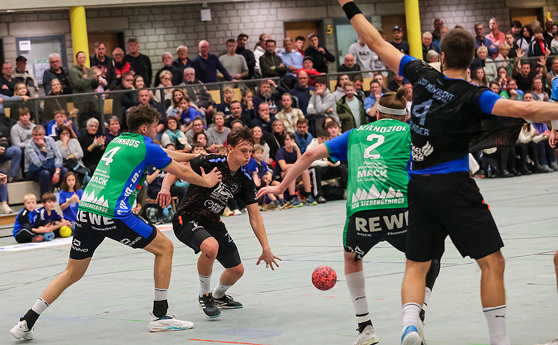 In Minute 56 hatte der Ligaprimus zum 26:26 ausgeglichen und das Momentum eigentlich auf seiner Seite. In dieser Phase erzielte der Siebengebirgler Simon Schlösser sechs seiner insgesamt neun Tore derweil sah Nümbrechts Tim Hartmann nach einem Foul bei Gegners Gegenzug die Rote Karte. Doch Jannik Lang und Fabian Benger bereiteten mit zwei Treffern den Weg zum Sieg. HSG-Coach Lars Degenhardt nahm zwar noch eine Auszeit und ließ sein Team in offener Manndeckung agieren, doch die Hausherren behielten die Nerven.