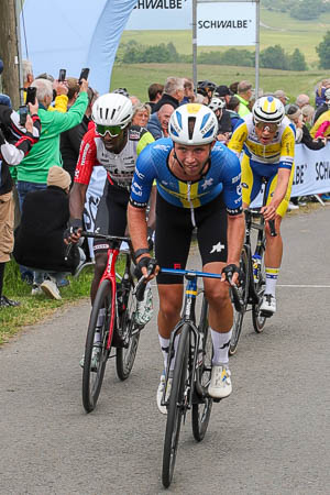 Vor allem die siebenköpfige Gruppe um Theiler, Lukas Meiler, Jean Loup M Fayolle, Jelle Vermoote, Ben Felix Jochum, Patrick Reißig und Jakob Schmidt gaben lange die Pace vor. Theiler holte sich beide Bergwertungen am Agathaberg und mit einem zweiten Platz auf der Kopfsteinpflasterpassage am Bensberger Schloss mit insgesamt zehn Punkten auch das Trikot des besten Bergfahrers. Nachdem die 27 Prozent steile Rampe am Agathaberg zum zweiten Mal bezwungen war, musste sich die Ausreißergruppe auf dem Weg in Richtung Bergisch Gladbach aber vom Hauptfeld schlucken lassen.