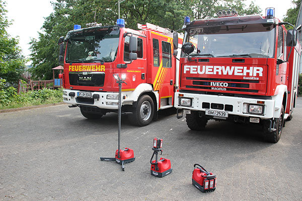 Man kann sie drehen und wenden, wie man möchte: Die Löschgruppe Marienberghausen der Feuerwehr Nümbrecht freut sich über die Anschaffung von drei mobilen LED-Beleuchtungssystemen, die gestern offiziell vorgestellt worden sind. Rund 2.500 Euro kosten die Geräte pro Stück. Finanziert und besorgt wurden sie vom Förderverein der Löschgruppe und von der Sparkasse Gummersbach. Künftig sollen die Systeme dafür sorgen, dass die Feuerwehr schnell und einfach auch dorthin Licht bringen kann, wo der nächste Stromanschluss weit weg ist oder es beschwerlich ist, erst einen Generator hinzutragen.