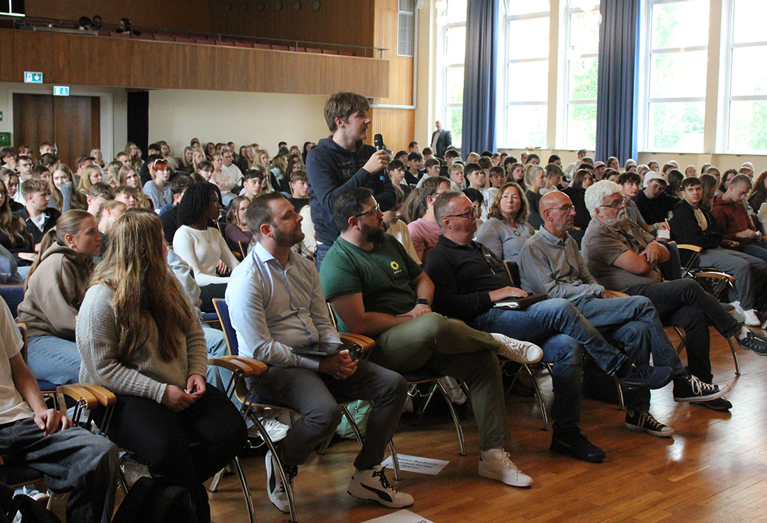 Waldbröl – Bürgermeisterin Larissa Weber und Vertreter der kandidierenden Parteien und der Wählergemeinschaft stellten sich rund 350 Gesamtschülerinnen und -schülern – AfD-Kandidat erschien nicht.