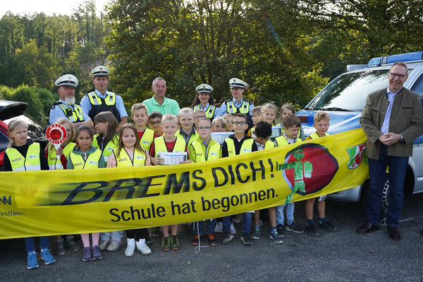 Oberberg – In Wegescheid hat die Polizei heute viele Fahrer aus dem Verkehr gezogen – Zusammen mit Schulkindern und Landrat Jochen Hagt haben sie zum Schulanfang zu mehr Vorsicht im Straßenverkehr aufgerufen.