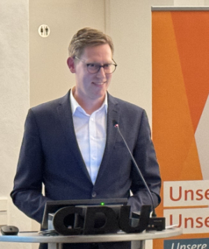 „Das war für uns der Beginn eines intensiven Findungsprozesses“, sagte der örtliche CDU-Chef Timo Fuchs. Nach dem Wahlergebnis von gut 45 Prozent im Jahr 2020 habe man sich zur Aufstellung eines eigenen Kandidaten berufen gefühlt (Anm. d. Red.: Stefan Meisenberg ist parteilos). Formell wird Heimes durch einen Beschluss der Ortsverbandsversammlung aufgestellt, dieser soll im kommenden September erfolgen. Politisch müsse das Blatt Papier in der Kommune 2024 erst noch beschrieben werden, weshalb Timo Fuchs während seiner Ansprache europäische Themen in den Vordergrund stellte und damit eine Brücke zur nächsten Rednerin baute.