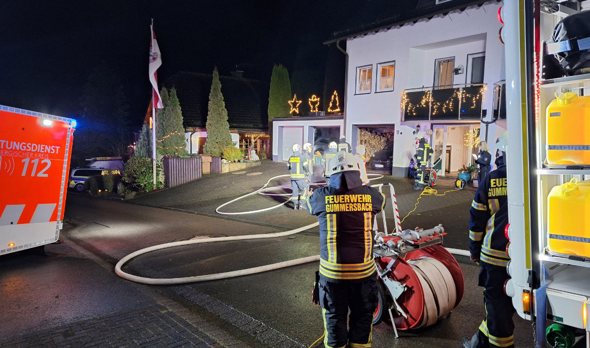 Am frühen Abend des ersten Weihnachtstages wurde die Feuerwehr Gummersbach zu einem Brand in den Ortsteil Bredenbruch alarmiert. Gemeldet war in der Straße „Im Bergsiepen“ ein Garagenbrand. Beim Eintreffen der Einsatzkräfte der Löschgruppe Lantemicke drang Rauch aus dem Gebäude, die Bewohner hatten bereits selbst mit dem Löschen begonnen. Durch die Wehrleute mussten lediglich noch kleinere Nachlöscharbeiten durchgeführt werden. Anschließend wurden die Garage und das angrenzende Wohngebäude belüftet, teilt die Feuerwehr mit.