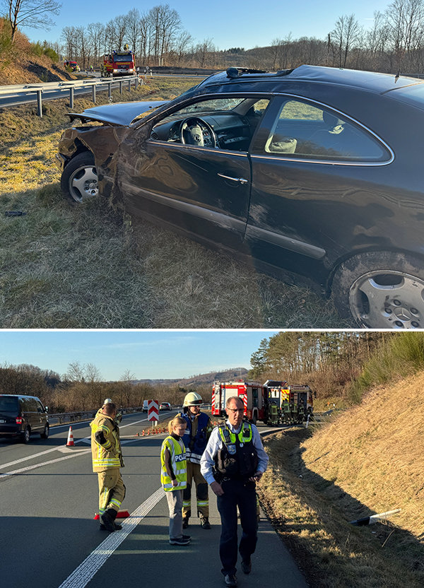Verletzt wurde am Mittwochnachmittag die Fahrerin eines Mercedes mit Gummersbacher Kennzeichen bei einem Alleinunfall auf dem Zubringer. Sie befuhr die B 256 in Richtung Bergneustadt und kam nach ersten Angaben der Polizei vor Ort aus unerklärlichen Gründen in Höhe Pochwerk von der Fahrbahn ab. Das Auto geriet in das Kiesbett und überschlug sich mehrfach.