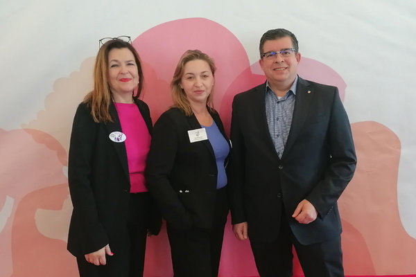 [Bürgermeister Frank Helmenstein (r.) zusammen mit Carmen Muñoz-Berz (l.) und Nina Sommer, Sprecherinnen der Regional AG Oberberg.]
