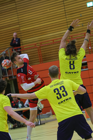 Das holte sein Team allerdings nach dem Seitenwechsel nach und diktierte das Geschehen bis zum 17:22 (52.). Zeitstrafen gegen Moritz Menger und Kevin Schieferdecker sowie eine rote Karte gegen Mathis Pötzsch machten das Spiel aber noch einmal spannend. Über 21:23 (57.) konnte sich Nümbrecht aber auf seine Deckung und den überragenden Kirchner verlassen. Der Anschlusstreffer zum 22:23-Endstand von Philipp Borisch fiel erst 33 Sekunden vor dem Ende – zu spät.