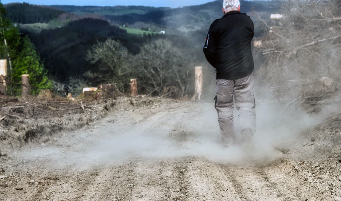 Den Spaziergänger mit Staubwolke fotografierte OA-Leserin Helga Riehl in Gummersbach-Erlenhagen.