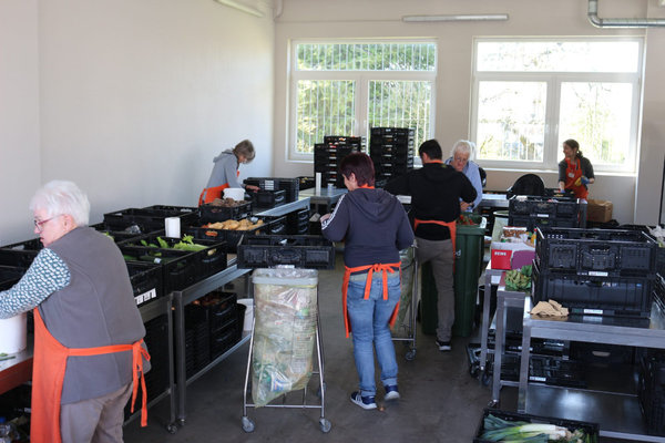 Neben den ehrenamtlichen Mitarbeitern, den Leitern der Sozialämter und des Jobcenters begrüßte Uwe Althoff, Vorsitzender des Vereins „Unter dem Regenbogen“, zur offiziellen Einweihung auch Waldbröls Bürgermeisterin Larissa Weber sowie die Rathauschefs der Kommunen, die von der Tafel versorgt werden: Hilko Redenius (Nümbrecht), Ulrich Stücker (Wiehl), Rüdiger Gennies (Reichshof) und Jörg Bukowski (Morsbach). Nach Angaben der Tafelleiterin sind derzeit mehr als 1.000 Haushalte mit über 2.000 Bedürftigen auf die Lebensmittel der Tafel Oberberg-Süd angewiesen. Rund 130 Beschäftigte hat sie, davon 110 Ehrenamtliche und 30 Beschäftigte in Teilzeit.