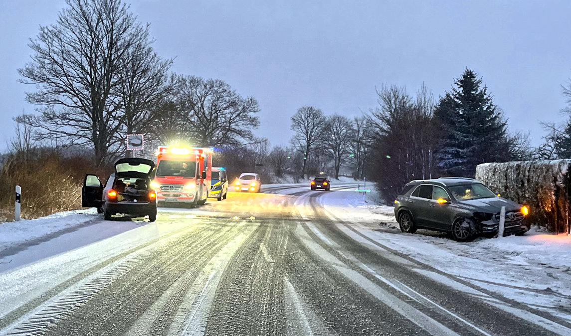 Ein 24-jähriger Morsbacher war am Samstag auf der L 344 in Reichshof-Erdingen unterwegs. Als er gegen 14:50 Uhr die Ampelkreuzung L 344/Odenspieler Straße erreichte, bremste er seinen VW ab und geriet auf der schneebedeckten Fahrbahn ins Rutschen. Der VW drehte sich und stieß mit dem bei Rotlicht wartenden Opel eines 34-Jährigen zusammen. Der Engelskirchener erlitt leichte Verletzungen und wurde zur ambulanten Behandlung in ein Krankenhaus gebracht, teilte die Polizei mit. Sein Auto wurde abgeschleppt. Der Morsbacher überstand das Unfallgeschehen unverletzt. Er konnte die Örtlichkeit nach abgeschlossener Unfallaufnahme mit seinem Auto verlassen.