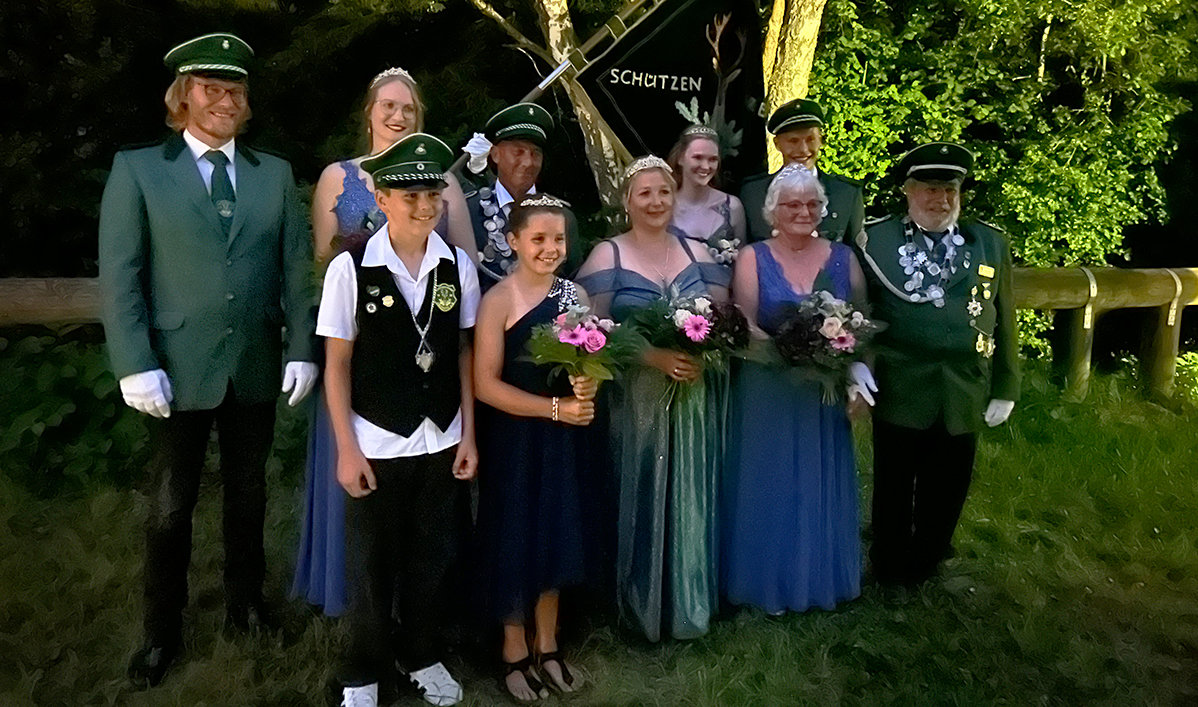 Die Wettbewerbe um die Prinzen- und Baronessewürde fanden schon am Sonntag, 10. August, statt. Hier wurde der große Traum von Jungschütze Sandro Pernat war: Im dritten Anlauf brachte er mit dem 191. Schuss den Vogel zum Abflug von der Stange. Sein Jubel ließ keinen Zweifel daran, dass er seine Regentschaft mit seiner Prinzessin Sherlyn Löschner genießen wird und den Schützenverein, zusammen mit einer aktiven Jugend, von denen sieben mit ihm den Wettbewerb austrugen, auf den kommenden Festen „sichtbar“ vertreten wird. Die diesjährige Baronesse Bianca Hagelstein siegte mit dem 121. Schuss und setze sich erfolgreich, aber auch etwas überrascht vom so sicheren Treffer, gegen acht Mitstreiterinnen durch. Als Baronesse-Begleiter hat sie ihren Verlobten Dominic Utsch gewählt.