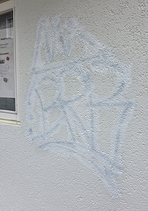 wurde bereits aufgetragen. Das Graffiti muss aber noch übermalt werden.]