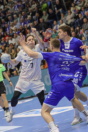 [Dominik Kuzmanovic (r., 8 Paraden/Quote: 25,8%) war vor allem vor der Pause ein starker Rückhalt. Die drei Paraden von Bertram Obling (Quote: 33,3 %) gaben dem VfL in der Schlussphase die nötige Ruhe.]
