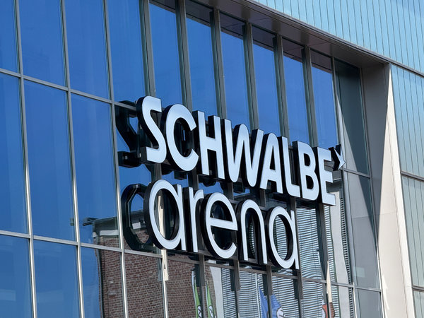 Seit vergangenen Samstagmorgen prangt an der Glasfront ein neues Banner, der den Firmenschriftzug des Namensgebers im neuen Layout zeigt. „Vor etwa drei Jahren haben wir unser rund 30 Jahre altes Logo und die Farben überarbeitet, um damit eine breitere Zielgruppe für unsere Produkte zu erreichen“, sagte Jahn. Zu Beginn des Jahres wurde der Vertrag mit der Arena bis 2029 verlängert, was die Firmenbosse schließlich auch zum Austausch des Schriftzuges bewog.