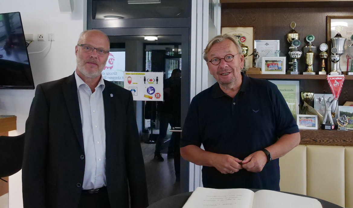 Bernd Stelter hat sich in das Goldene Buch der Stadt Wipperfürth eingetragen. Die Zeremonie fand gestern in den Räumen des VfR Wipperfürth statt. Neben Michael Moll, dem Organisator des Abends, waren unter anderem auch Björn Lange, Open-Air-Veranstalter in Wipperfürth, und der stellvertretende Bürgermeister Heribert Berster mit dabei. Dieser erinnerte an die Verdienste Stelters für die Hansestadt und vor allem für die Alte Drahtzieherei als Veranstaltungsort. "Bernd Stelter hat mit vielen Auftritten dafür gesorgt, dass diese Location bekannt wurde und seitdem viele Künstler nach Wipperfürth gekommen sind.“