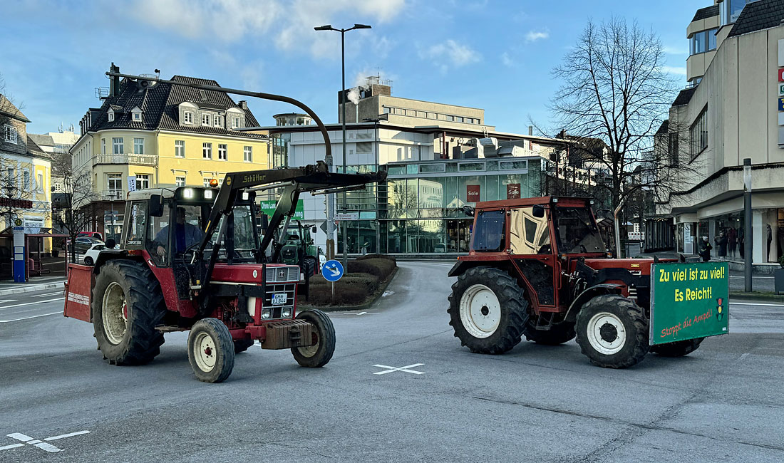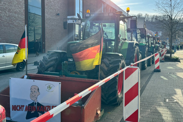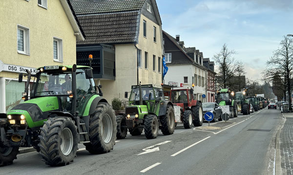 Wie die Polizei am Nachmittag meldet, sind die Protestaktionen der Landwirte im Oberbergischen friedlich verlaufen. Zu der zentralen Versammlung in der Gummersbacher Innenstadt seien insgesamt etwa 800 Teilnehmer mit 412 Traktoren, 61 Lkw und 143 Autos gekommen. Landrat Jochen Hagt äußert sich positiv zu den kreisweiten Kundgebungen: "Ich bedanke mich bei den Teilnehmenden der Aktionen heute für ihr diszipliniertes und kooperatives Verhalten. Am heutigen Tage haben Sie alle ein starkes Zeichen für die demokratische Debatte gesetzt. Das begrüße ich ausdrücklich."