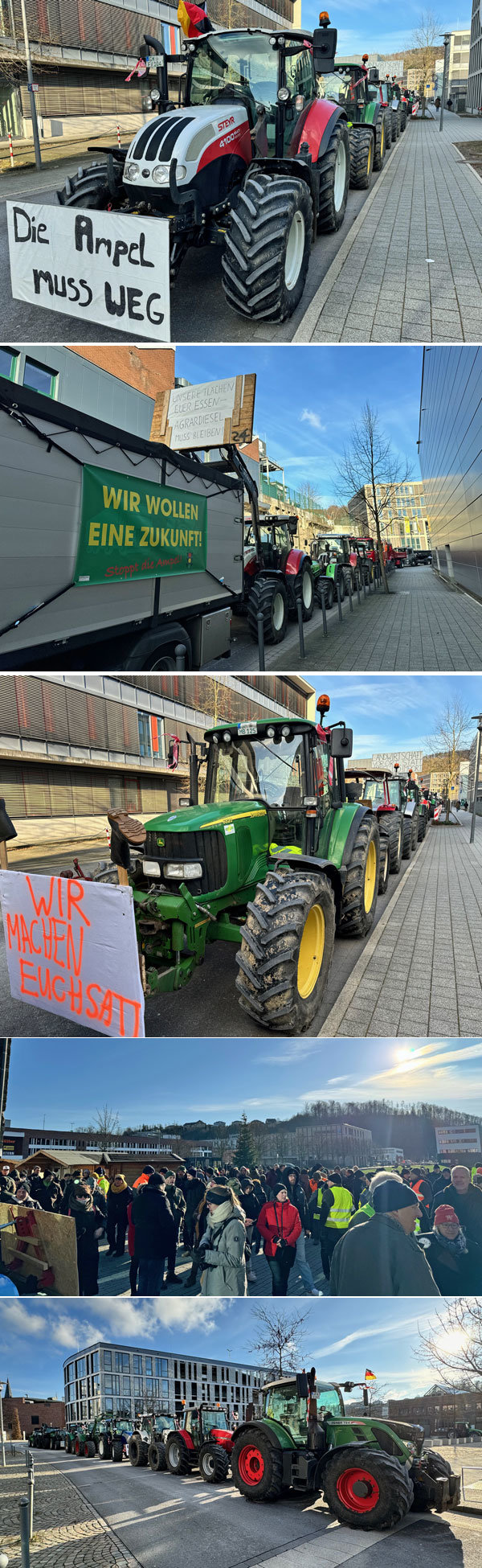 Oberberg - Kreisbauernschaft freut sich über Unterstützung aus vielen Bereichen - Es fanden kreisweit mehrere Protestaktionen statt - Auf der Kundgebung gab es Kritik für die nicht anwesende Bundestagsabgeordnete Sabine Grützmacher (AKTUALISIERT, mit Video).
