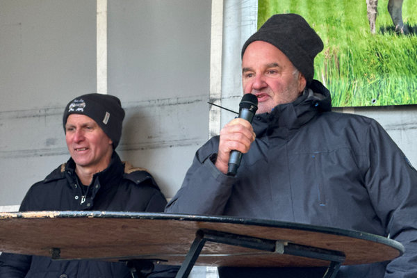 Franz Bellinghausen, Vorsitzender der Kreisbauernschaft, freute sich, dass über 800 Teilnehmer dem Aufruf zum „friedlichen und freundlichen Miteinander" auf das Gummersbacher Steinmüllergelände gefolgt waren und den oberbergischen Landwirten eine große Lobby gaben. Die aktuelle Politik sei aus seiner Sicht eine enorme Belastung für die Landwirtschaft und den Mittelstand. „Das können wir nicht länger hinnehmen, deswegen erheben wir jetzt unsere Stimme“, so Bellinghausen, der für seine Rede großen Applaus erntete.