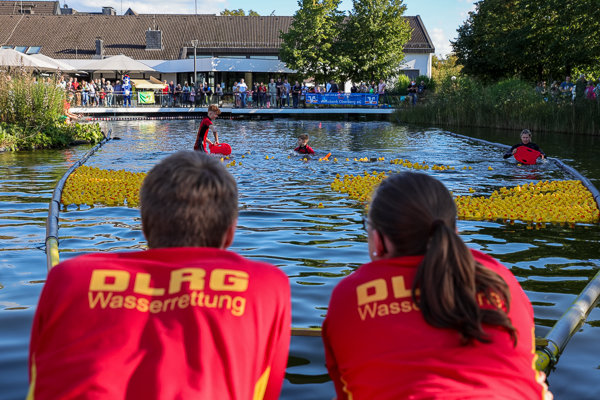 [Unter den wachsamen Augen der DLRG-Helfer wurde das Entenrennen gestartet.]