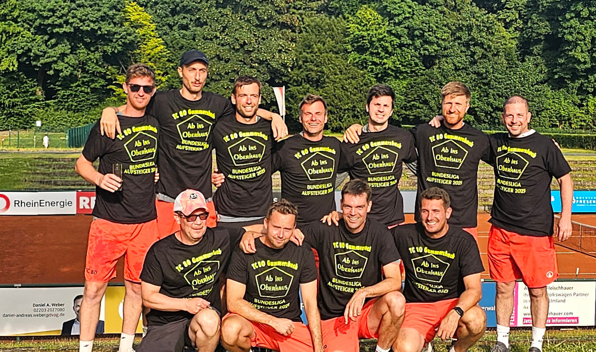 Gummersbach – Die Herren 30 des TC 80 Gummersbach tragen sich mit einer perfekten Saison in der Regionalliga West in die Geschichtsbücher ein und feiern den Sprung in die höchste Spielklasse – Riesiger Jubel nach abschließendem Erfolg in Köln.