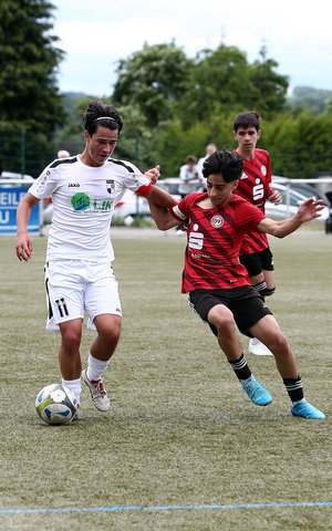 [Frömmersbachs Mohamed Nuur im Duell mit seinem Gegenspieler.]