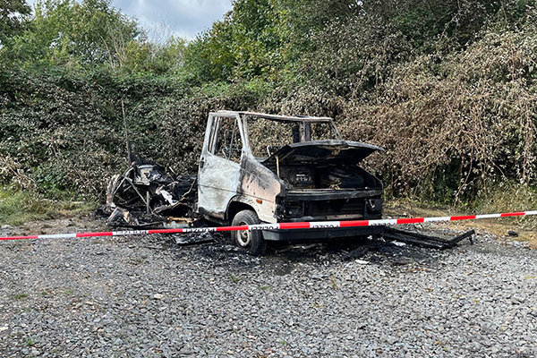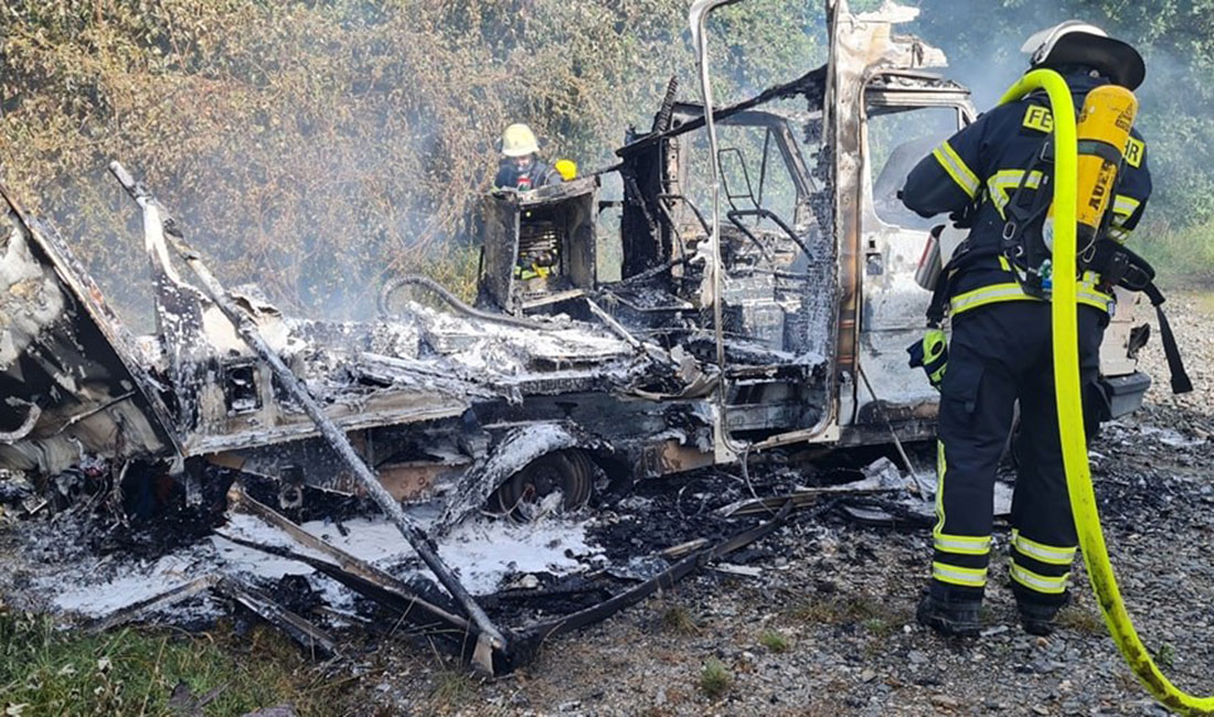 Passanten hatten das Feuer entdeckt und den Notruf gewählt. Als die Feuerwehr kurz nach der Alarmierung eintraf, befand sich das unbewohnte Wohnmobil im Vollbrand. Immerhin: Das Fahrzeug stand mit ausreichend Abstand zu anderen Gegenständen oder Bepflanzung, sodass kein Übergreifen der Flammen zu befürchten gewesen war. Etwas Sorgen bereitete den Einsatzkräften zunächst eine Gasflasche im Innenraum des Wohnmobils, die mit einer Stichflamme durchgezündet habe. Die Feuerwehr ließ das Gas kontrolliert abbrennen.
