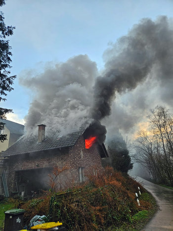 Nümbrecht - Eine Wohnung in einer ausgebauten Garage wurde am Montagabend ein Raub der Flammen - Der Brand beschäftigte die Feuerwehr für mehrere Stunden - Anwohner blieben unverletzt (AKTUALISIERT).