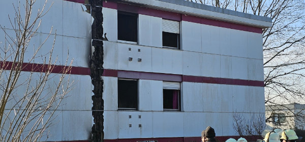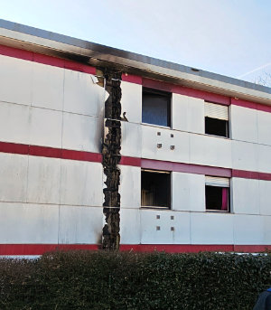 [Die Flammen frass sich über das Entlüftungssystem und die Fassade nach oben.]