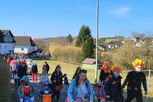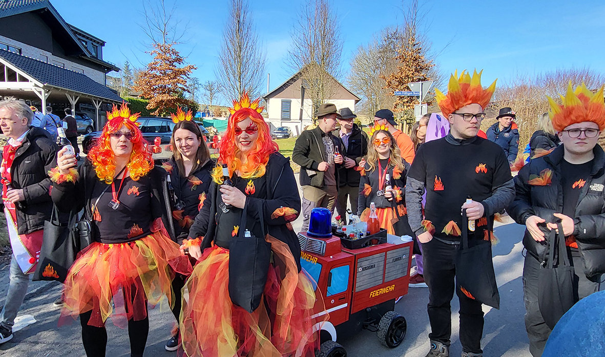 Die etwa 120 Teilnehmer beschenken sich zumeist selbst mit Kamelle. Die Kinder fingen die in die Luft geworfenen Leckereien sogleich wieder auf. „In den Einfahrten jubeln uns einige Zaungäste zu, die wir gerne mitversorgen“, so Dräger. Der Umzug besteht ausschließlich aus Fußgruppen, die mit bunt geschmückten Handkarren und Bollerwagen umherziehen.