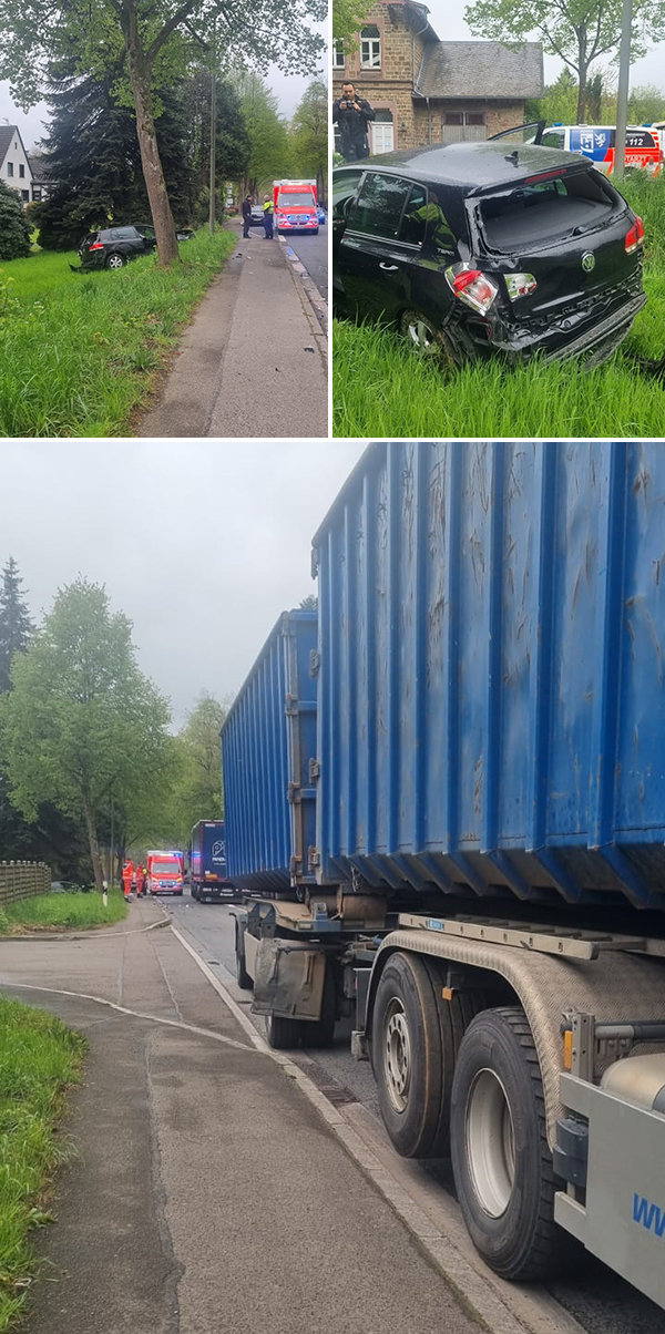 Engelskirchen – 85-Jährige gerät mit ihrem Golf zwischen einen Lkw und seinen Anhänger – Insgesamt drei leichtverletzte Personen.