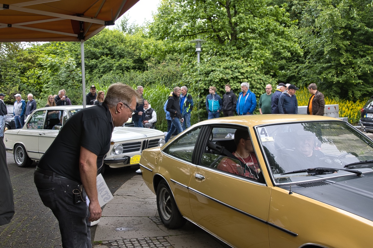 Die Starter bekamen Aufgabenstellungen an die Hand. „Sie fahren nach sogenannten chinesischen Zeichen“, wie Marco Wirtz verriet. Gemeint sind damit Aufgabenteile in Form von Pfeilen, Strichen und Punkten. Gefahren wurde nach Schwierigkeitsgraden und in drei Klassen. Nach der Fahrereinweisung ging es um 9:31 Uhr am Start- und Zielpunkt „Parkhotel Nümbrecht“ los. Im Minutentakt bekamen die Teilnehmer ihr Bordbuch samt Aufgaben und Wegbeschreibung an die Hand. Als Erster auf den Weg durfte sich der Gesamtsieger des vergangenen Jahres mit seinem roten MG, Baujahr 1974, machen.