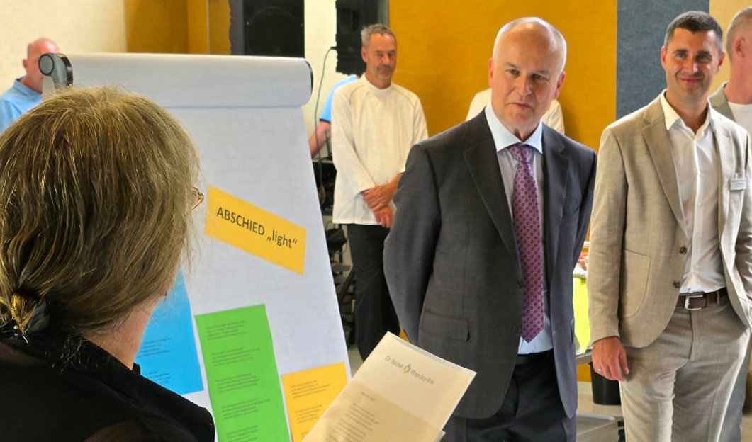 Dr. med. Philip Weber, der den Staffelstab von Prof. Peters bereits am 1. Juli des vergangenen Jahres übernommen hatte, erläuterte das Thema „Rehabilitation heute und morgen“ im Hinblick auf die Orthopädie, und Dr. med. Christian Rosenwick, Chefarzt der Neurologie, betrachtete das Thema aus neurologischer Sicht. Digitale Therapieinhalte mit Trainingsvideos und Podcasts werden bereits heute den Patienten angeboten und sollen perspektivisch im Patientenzimmer beginnen, berichtete Dr. Weber.
