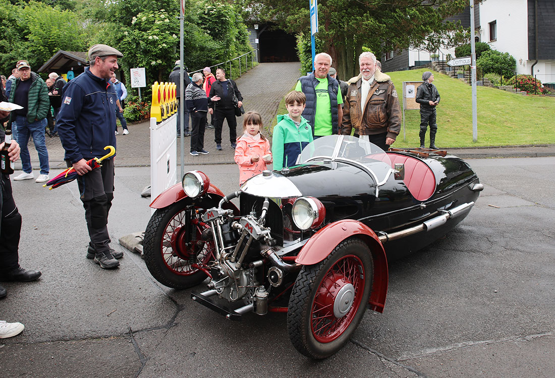Eines der auffälligsten Fahrzeuge beim 23. Motorrad-Oldtimer-Treffen in Nümbrecht-Prombach hatte diesmal nicht zwei Räder, sondern drei: Eine Morgan Threewheeler Supersports aus dem Jahr 1934, liebevoll restauriert und mit einem 1.000 Kubikzentimeter-Matchless-Motor ausgestattet, zog viele Blicke auf sich.