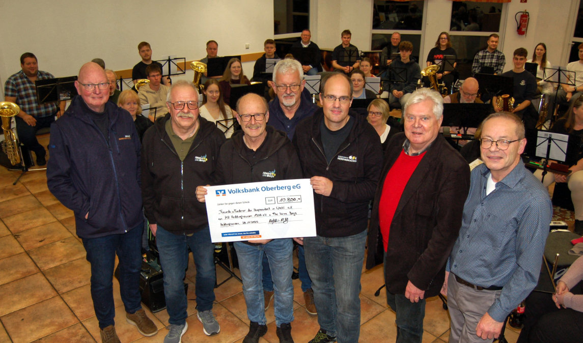 Nach ihrem Benefizkonzert für den Förderverein der Hospizarbeit überreichten der Musikverein Heddinghausen und „The Voice Boys“ eine Spende über 10.800 Euro. Die Summer ist der Erlös des gemeinsamen Konzerts, das Anfang November in der Wiehltalhalle stattfand (OA berichtete). Anlass war das 25-jährige Bestehen des Fördervereins der Hospizarbeit in Wiehl, der die stationäre und ambulante Hospizarbeit sowie das Trauerzentrum in Wiehl unterstützt, berichtete Dr. Jorg Nürmberger bei der Scheckübergabe im Vereinshaus in Heddinghausen.