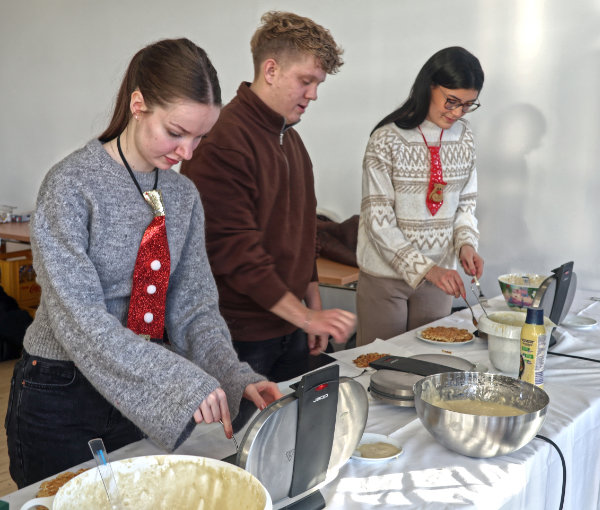 18 Auszubildende der Kreisverwaltung haben in diesem Jahr wieder eine Adventsaktion für den guten Zweck veranstaltet. Sie verkauften frisch gebackene Waffeln, Kaffee und Softgetränke im Kreishaus. Ihre Kolleginnen und Kollegen sowie die Besucherinnen und Besucher des Kreishauses freuten sich über dieses Angebot in der Vorweihnachtszeit: Die Auszubildenden backten und verkauften allein 520 Waffeln. Mit zusätzlichen Geldspenden erzielten sie einen Erlös in Höhe von genau 1.000 Euro. Diese Summe spenden die Nachwuchskräfte an den Lindenhof (Initiativen für Mensch und Natur) in Waldbröl, der Familien in herausfordernden Lebenslagen unterstützt und darüber hinaus unter anderem Kurse und Workshops zu Naturschutz und Nachhaltigkeit und weitere (Natur-)Erlebnisse bietet.