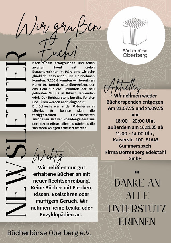 Oberberg - Im Juli, September und November ist wieder die Buchabgabe für den guten Zweck möglich.